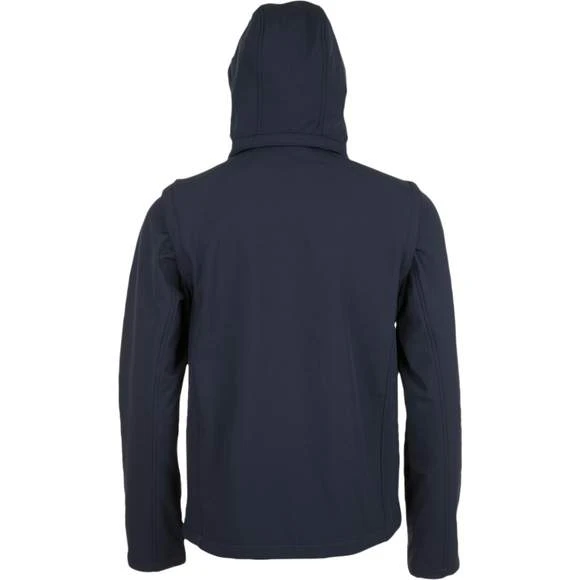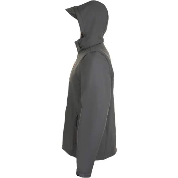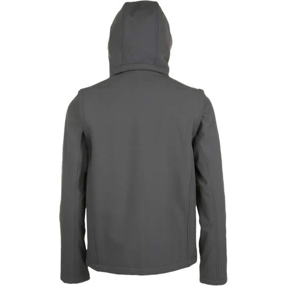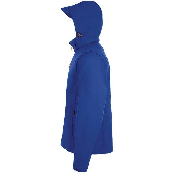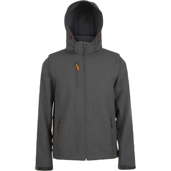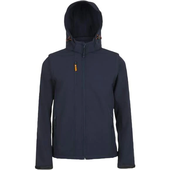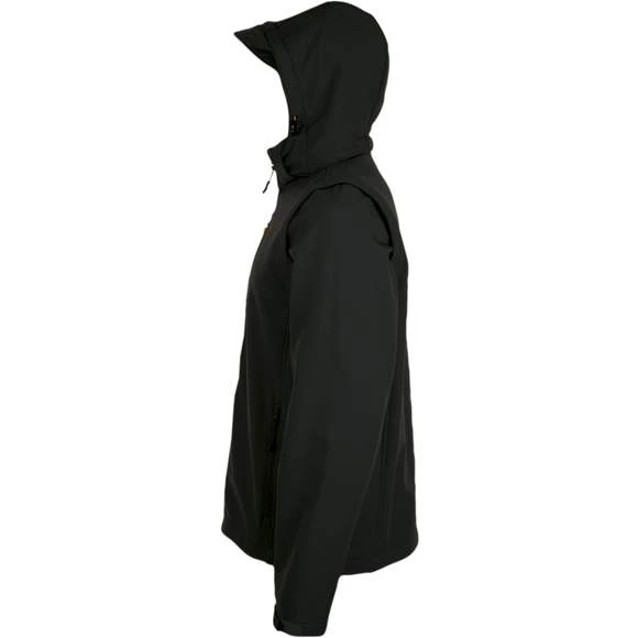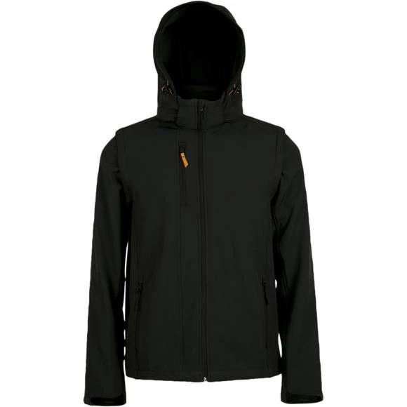 Softshell capuche et manches amovibles. Fermeture zippée. 3 poches zippées. Manches et capuche à visière amovibles. Cordons de resserrage à la capuche et au bas du vêtement. Extérieur: 95% polyester – 5% élasthanne. Grammage : 340g/m²
