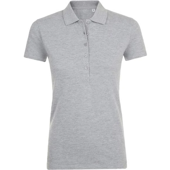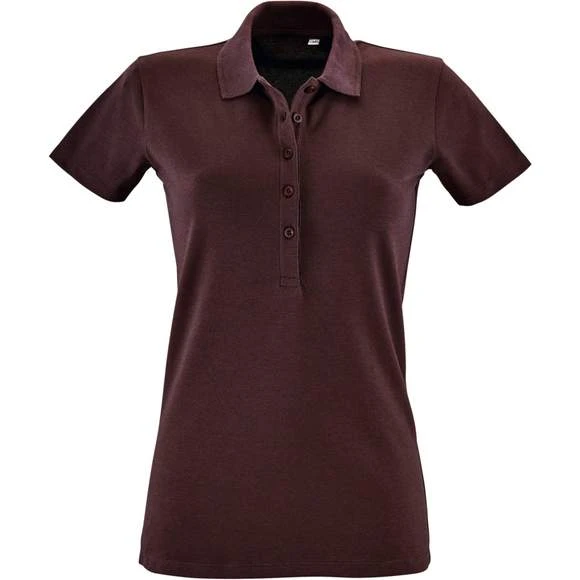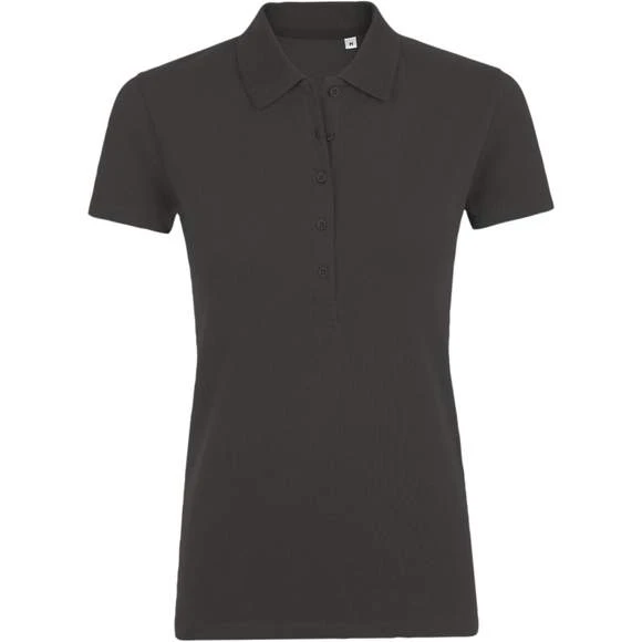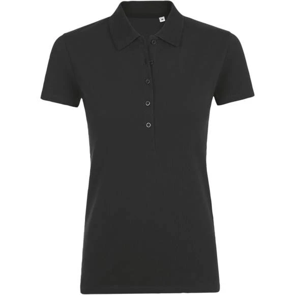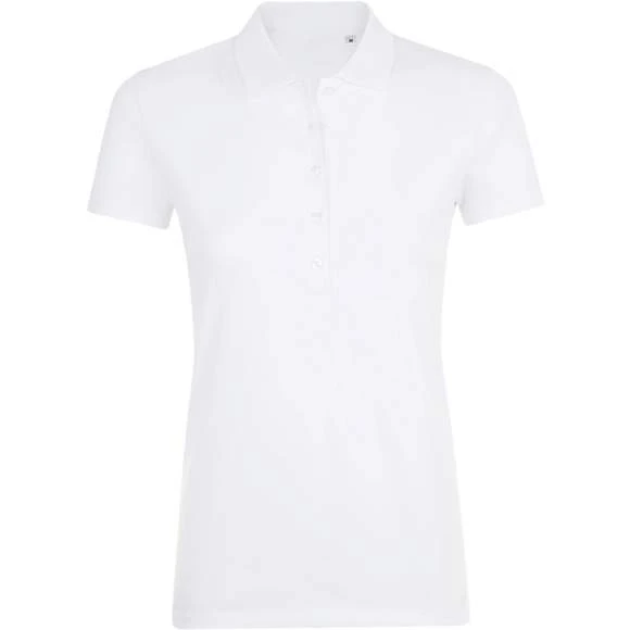 Polo coton élasthanne femme. Manches courtes. Coupe cintrée. Patte de col 5 boutons ton sur ton. Fentes latérales. Coupé cousu. 95% coton peigné Ringspun – 5% élasthanne. Grammage : 220g/m²