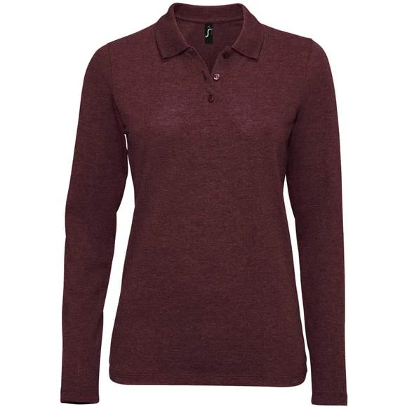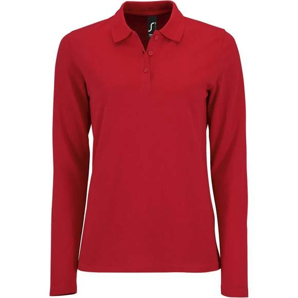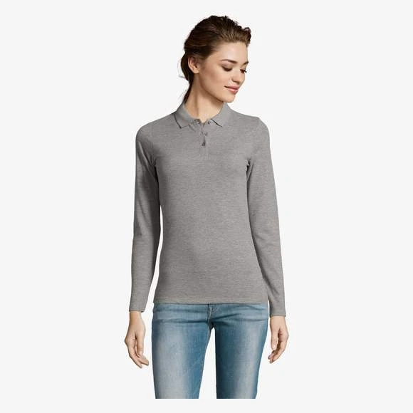Polo piqué manches longues femme, maille piquée 180g/m². 100% coton peigné. Col en côte 1X1. Grammage : 180g/m²