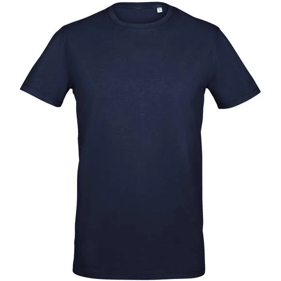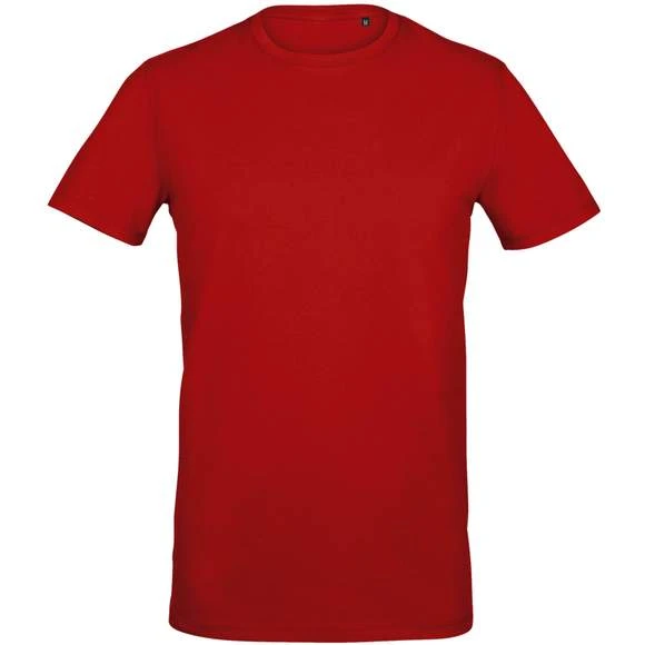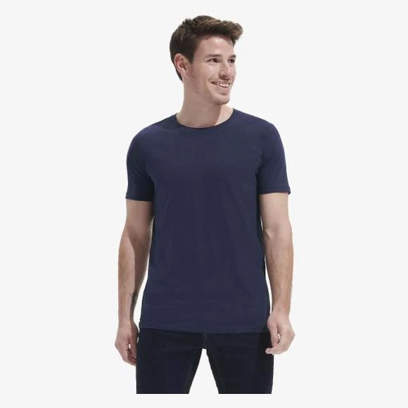 Tee-shirt col rond homme. JERSEY 190. 95% coton semi-peigné Ringspun. 5% élasthanne. Bande de propreté au col. Col avec bord côte élasthanne Col rond. Coupé-cousu. Stretch. Grammage : 190g/m²