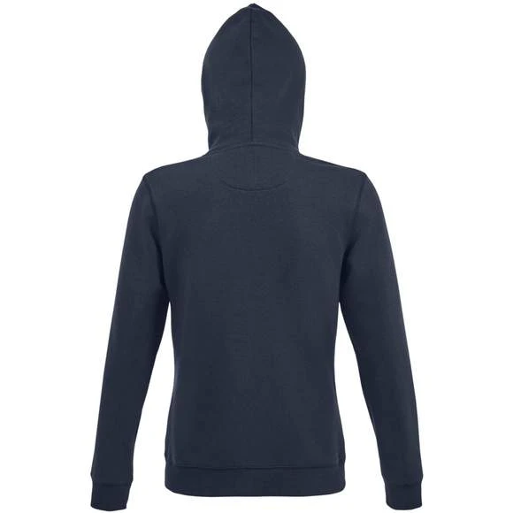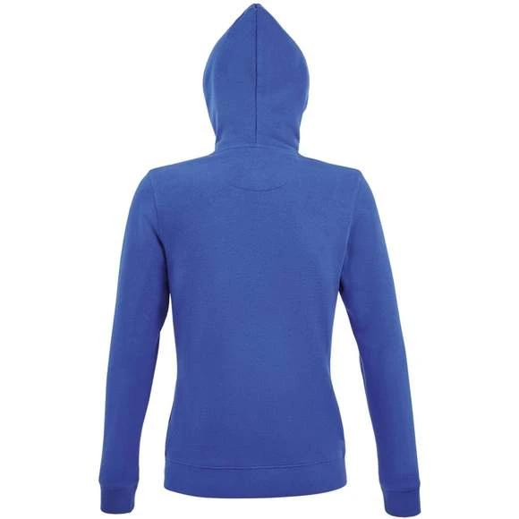 Veste zippée femme à capuche. Manches montées. 2 poches kangourou, coupé cousu. Capuche doublée avec cordon de serrage ton sur ton. Poignets et bas en bord côte 2×2. Demi-lune à l’intérieur du col. Bande de propreté intérieur col. 80% coton Ringspun 20% polyester. Intérieur gratté. Extérieur 100% coton. Grammage : 280g/m²
