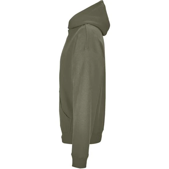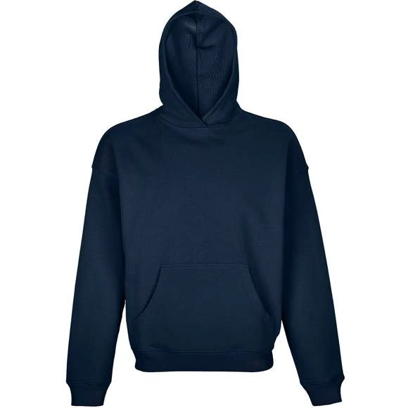 Sweat-shirt unisexe à capuche. Manches montées. Bord côte 2×2 aux poignets et bas du vêtement. Coutures latérales. Col croisé et poche kangourou. Capuche doublée matière principale. Bande de propreté intérieur col. Composition : 100% coton. Grammage : 450g/m²