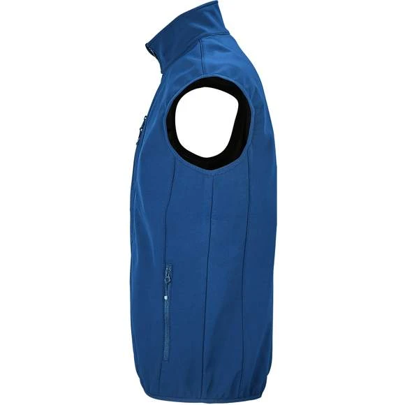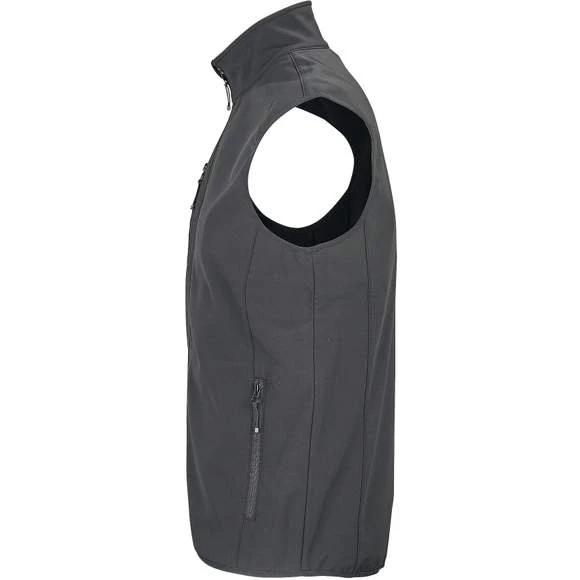 Veste pour homme zippée sofshell sans manche. Ouverture zippée. 2 poches latérales et 1 poche poitrine zippées. Tire-zips contrastés. Biais élastique aux emmanchures et bas du corps. Composition : 94% polyester recyclé – 6% élasthanne. 3 couches. Intérieur polaire : 100% polyester. Membrane 5000 mm imperméable et respirante. Grammage : 270g/m²