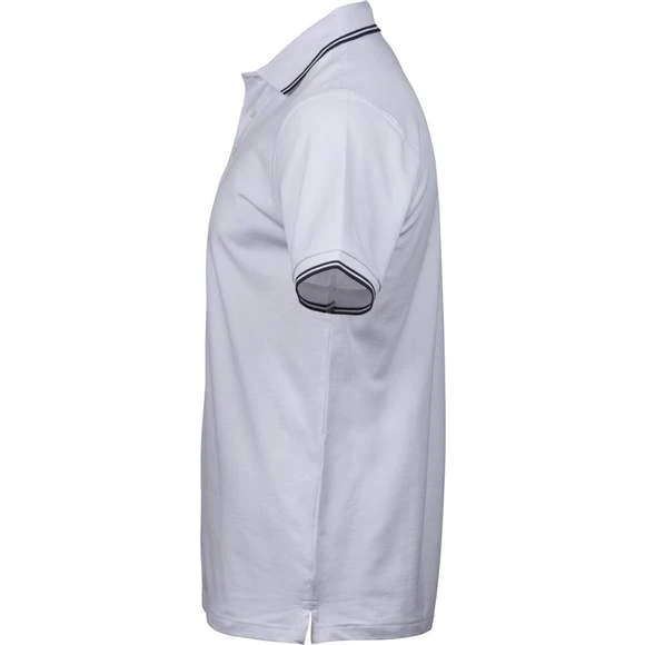 Polo homme col et manches contrastés. Maille piquée mini. Liserés contrastés sur col et manches. Col à côte tricoté avec Lycra. Pré-rétréci. Bande de propreté. Plaquette 3 boutons ton sur ton. Composition : 95% coton peigné Ringspun organique certifié et 5% élasthanne. Grammage : 215g/m²