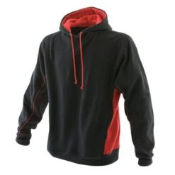 Sweat à capuche avec poche kangourou à l’avant. Présence d’élasthanne dans les poignets et la taille. Molleton brossé 80 % coton 20 % polyester. Grammage : 280g/m²