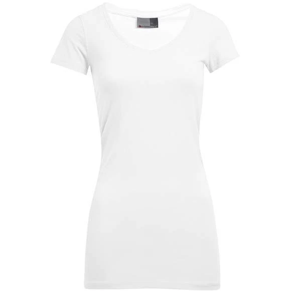 Tee-shirt 95 % coton single jersey 5 % élasthanne. Coupe ajustée et longue. Col V. Grammage : 180g/m²