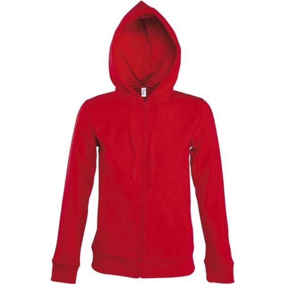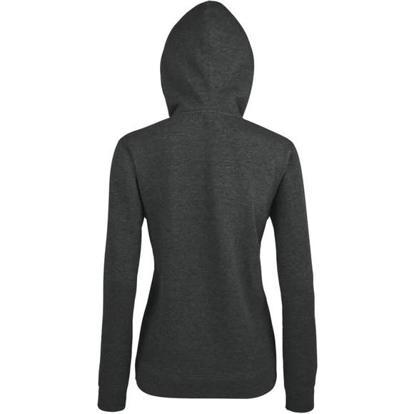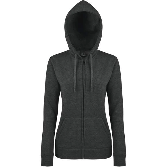 Veste zippée femme à capuche doublée – Molleton 290 • 50% coton 50% polyester • Intérieur en molleton gratté – Manches montées • 2 poches kangourou • Bas et poignets en bord côte élasthanne • Capuche doublée avec cordon de serrage ton sur ton • Coupe ajustée Grammage : 290g/m²