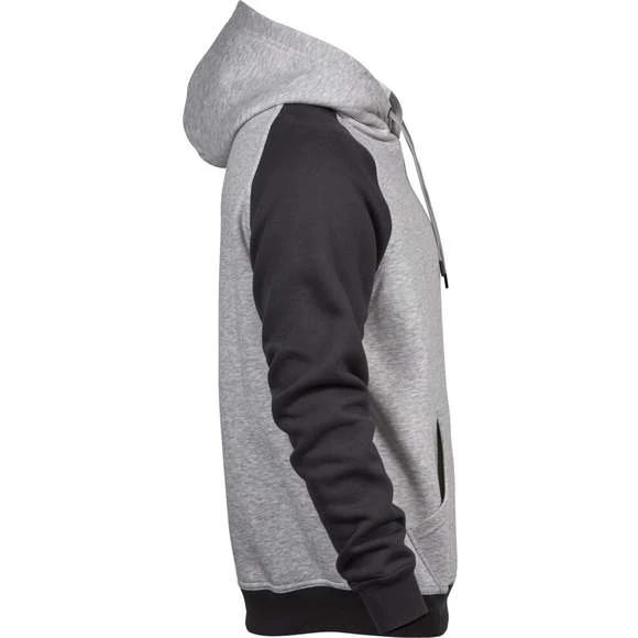 Présence de Lycra dans tous les bords côte. Grande poche kangourou. Intérieur brossé. Capuche avec cordon ton sur ton. Manches contrastées. Composition : 70% coton Ringspun, 30% polyester. Grammage : 320g/m²