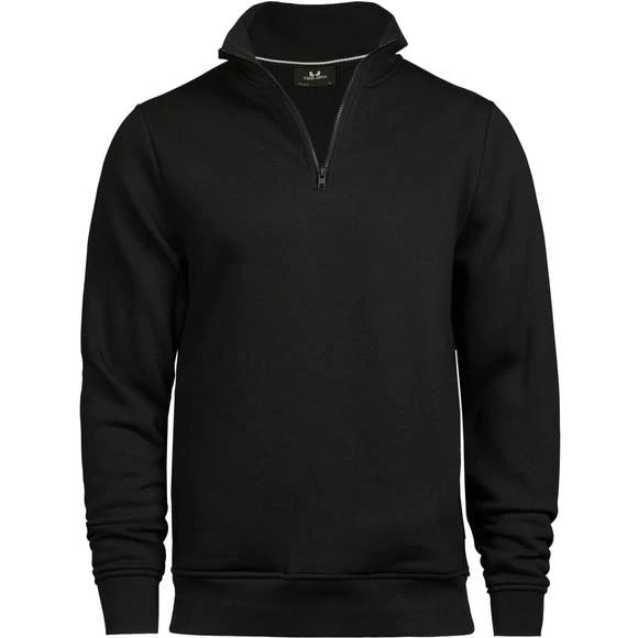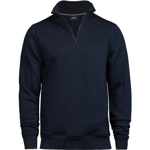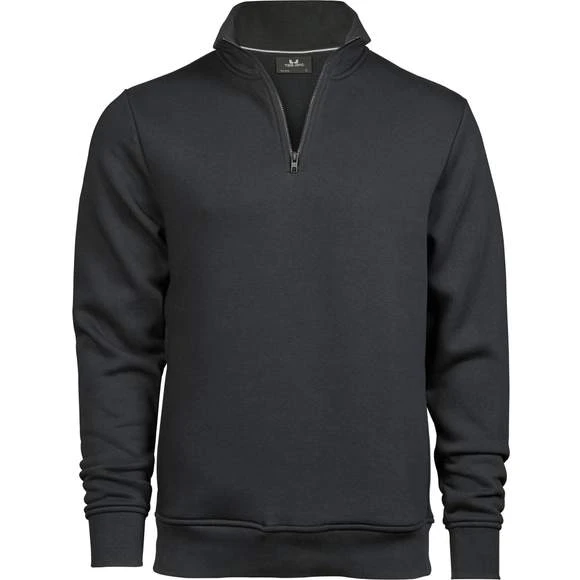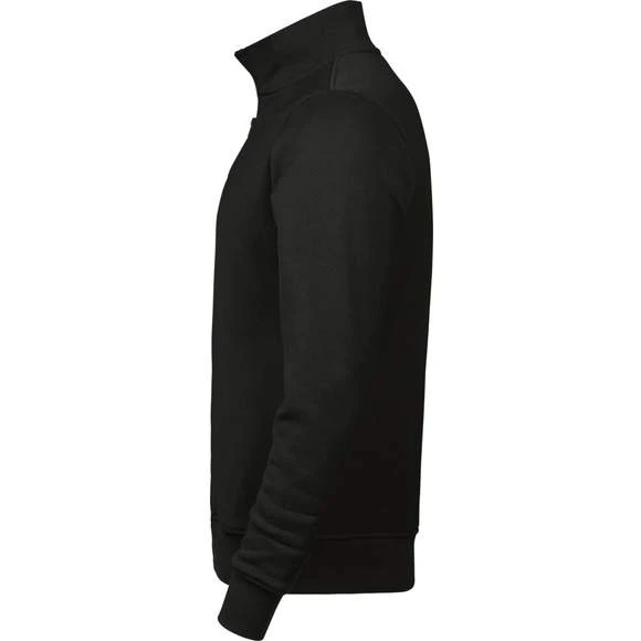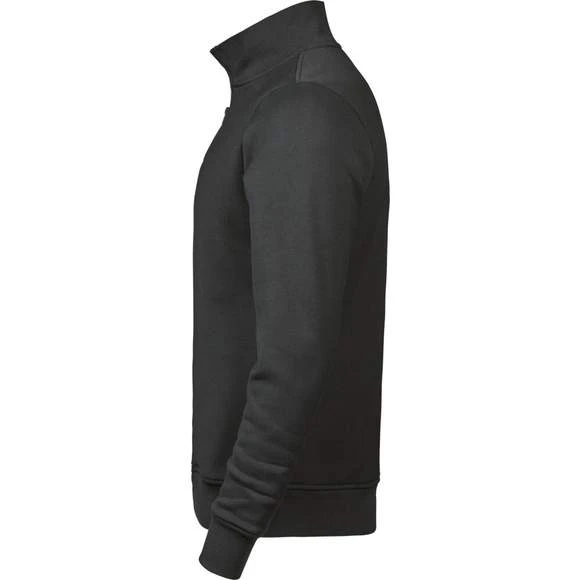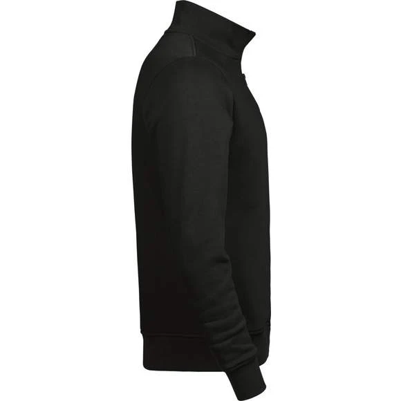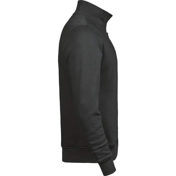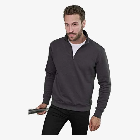 Sweat col zippé lourd. Col, taille et poignets en bords côte avec Lycra®. 2 poches latérales. Intérieur brossé. Teinté 2 fois. Composition : 70% coton Ringspun, 30% polyester. Grammage : 310g/m²