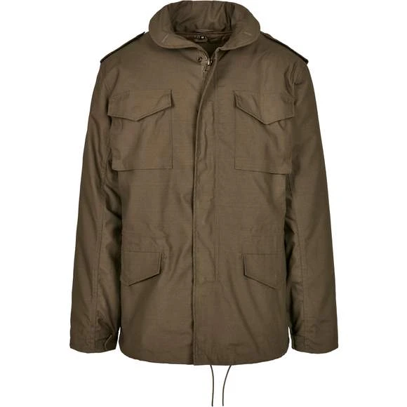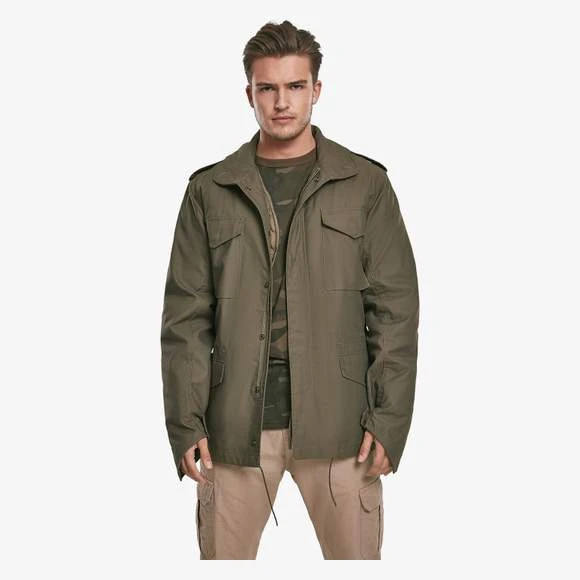 Veste M65 militaire classique, déperlante, confectionnée dans une matière durable, avec une doublure amovible, une fermeture à scratch à l’extrémité de la manche, une taille ajustable et une capuche dissimulée. La veste M65 bénéficie de deux grandes poches poitrine, de deux poches à rabat spacieuses sur le devant, d’une capuche en coton dissimulée avec cordon de serrage et boutons-pression sur l’épaule. Matière déperlante et durable. Cette veste bénéficie également d’un côté fonctionnel avec sa doublure amovible. Taille ajustable. Composition doublure 1 : 100 % coton. Doublure 2 : 100 % polyester. Extérieur 1 : 80% polyester, 20% coton. Extérieur 2 : 100 % polyester Grammage : 235g/m²