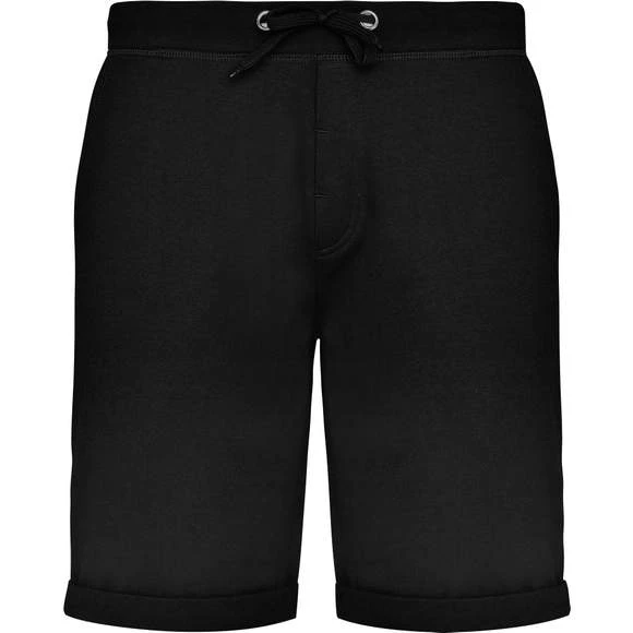 Short de sport avec ceinture élastique et cordon de serrage. Poches latérales et poche arrière et ourlet avec surpiquage de sécurité. Étiquette détachable. Composition : 60% coton, 40% polyester (sauf coloris gris chiné : 85% coton, 15% viscose). Grammage : 290g/m²