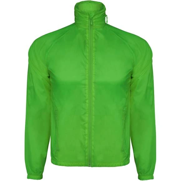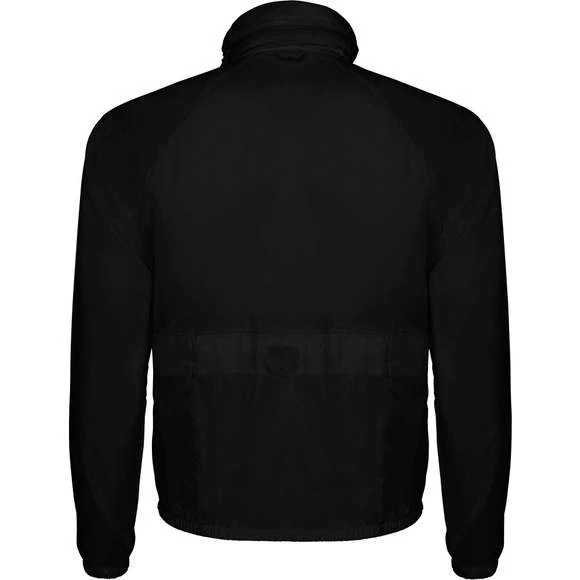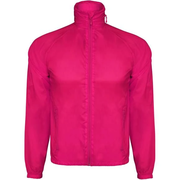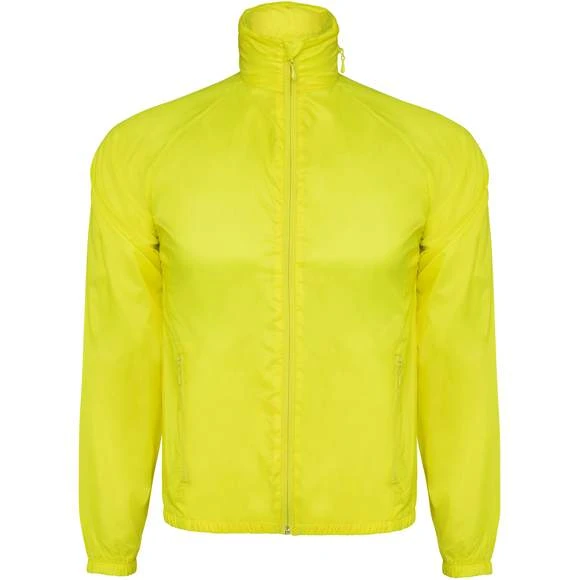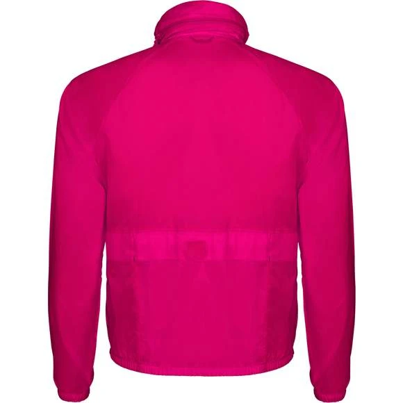 Veste coupe-vent en tissu technique. Col avec fermeture éclair pour garder la capuche. Tissu respirant au niveau de l´emmanchure. Manches raglan. Double poche sur le devant avec fermeture éclair. Ouverture et fermeture avec crémaillère. Poche arrière pour ranger le vêtement à mode de sac. Bas de veste et poignets de manches avec élastique. Bride située en haut du dos dans la zone du cou pour accrocher l´article. Capuche avec élastique et embouts ajustables. Tissu respirant a l´intérieur du cou. Tissu respirant dans la poche intérieur du dos. Étiquette détachable. Modèle résistant à l´eau. Modèle coupe-vent. Modèle respirant. Composition : 100% polyester. Grammage : 50g/m²