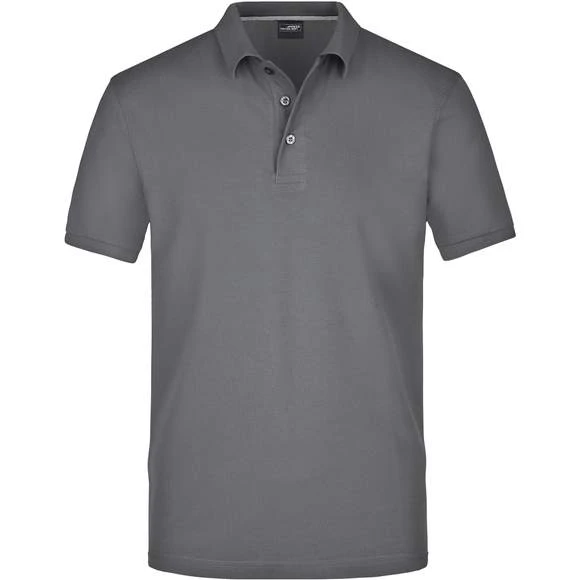 Polo pour homme, de qualité supérieure. Excellente qualité de tissu piqué. En coton Pima, peigné et filé à l’anneau. L’utilisation du coton Pima, qui est particulièrement fin et à poils longs, permet d’obtenir une grande qualité de surface. Le col du polo et les poignets sont en tricot. Il possède des boutons de couleur titane, des fentes latérales et 3 boutons. Composition : 100% coton. Grammage : 180g/m²