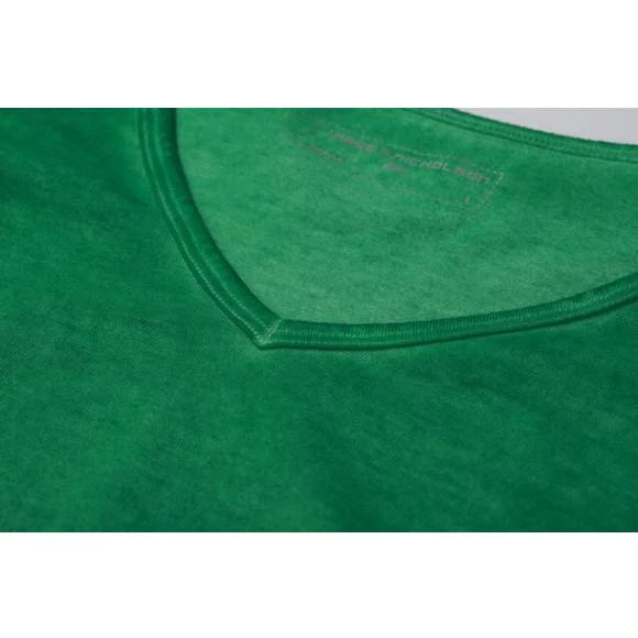 T-shirt tendance pour femme. En jersey simple, technique élaborée d’impression en spray. Coton peigné ringspun. Coupe ajustée cintrée. Col en V et manches avec une coupe étroite. Composition : 100% coton. Grammage : 140g/m²