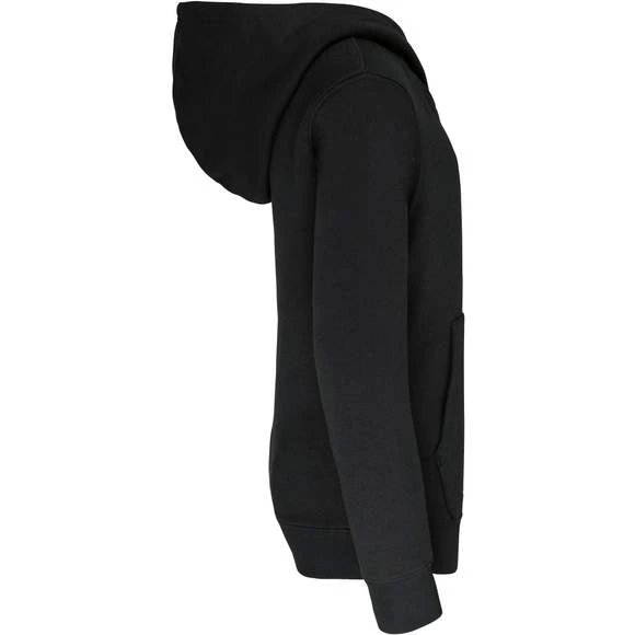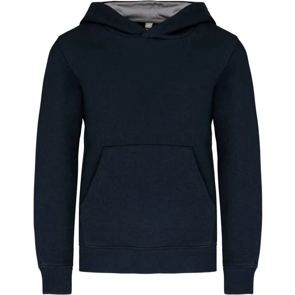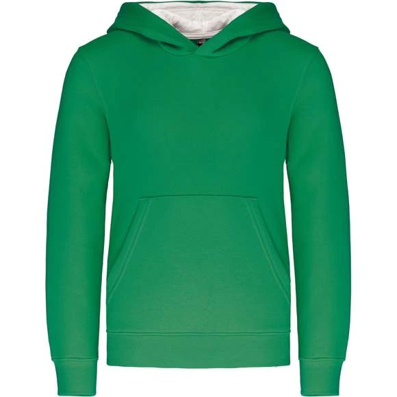 80% coton / 20% polyester. Molleton gratté. Poche kangourou avec ouverture discrète et attache à l’intérieur du col pour passage écouteurs. Finition bord-côte aux poignets et bas de vêtement. Capuche doublée et contrastée. Grammage : 280g/m²