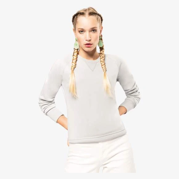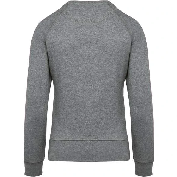80% coton biologique / 20% polyester certifié OCS Blended – Organic Content Standard. Molleton non gratté (French Terry). Coupe mode. Bord-côte col, bas de manches et de vêtement. Bande de propreté chevron intérieur col et application en V à l’encolure. Pas d’étiquette de marque au col, uniquement une puce de taille pour faciliter la personnalisation. Grammage : 300g/m²