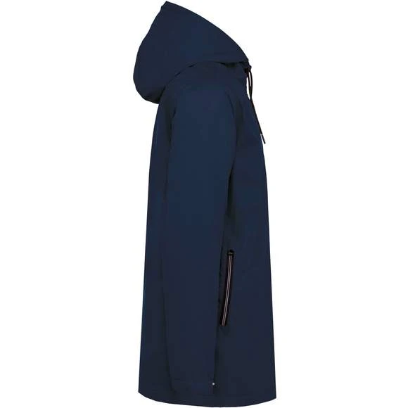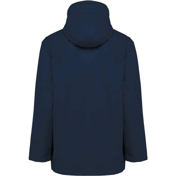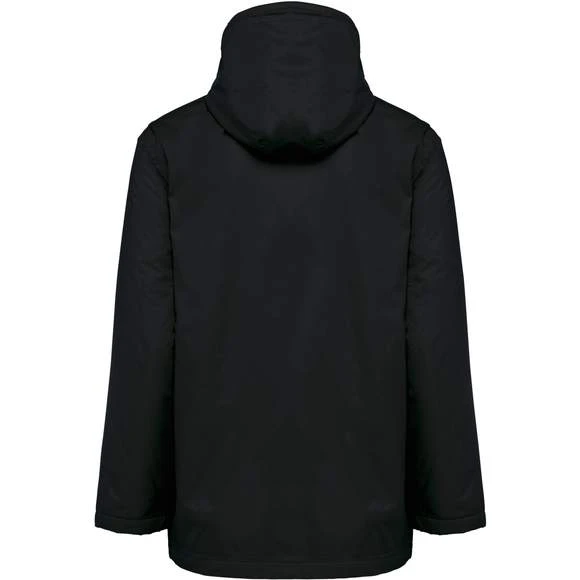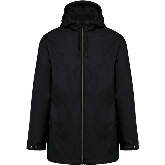 Veste à capuche avec doublure en micropolaire unisexe. Coupe droite. Doublure corps, col et capuche en micropolaire ton sur ton. Manches ouatinées et doublées en polyester. Fermetures zippées noire avec chaînette argent en nylon. 2 poches avant zippées. 1 poche intérieure fermée avec bande auto-agrippante. Capuche en 3 parties, doublée avec cordon de serrage de couleur noire. Réglage bas de manches avec 2 boutons pression. Finition demi-lune encolure dos pour faciliter la personnalisation de marque à l’intérieur. Lien d’accrochage intérieur col. Zips invisible de personnalisation côté cœur et bas de vêtement. Etiquette de marque Tear Away. Composition : 100% polyamide 210T avec enduction acrylique. Doublure 100% polyester micropolaire. Grammage : 200g/m²