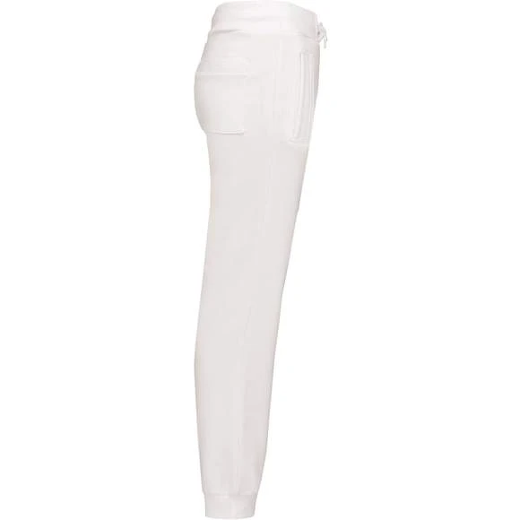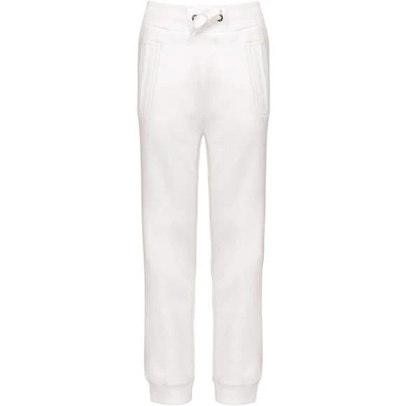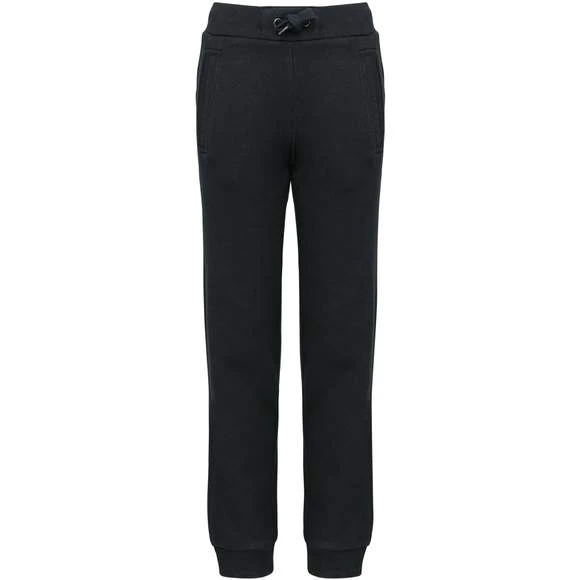 80% coton / 20% polyester. Molleton gratté. 2 poches côtés et 1 poche arrière plaquée. Large bord-côte et lien de serrage à la taille. Finition bord-côte 1×1 bas de jambe. Grammage : 300g/m²
