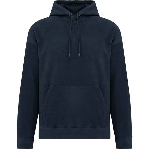 Sweatshirt à capuche oversize en micropolaire recyclée unisexe. Micropolaire antiboulochage. Coupe oversize. Poches kangourou. Capuche doublée en coton et cordon de serrage rond ton sur ton avec embout métal. Finition demi-lune encolure dos pour faciliter la personnalisation de marque à l’intérieur. Bande de propreté intérieur col chevron ton sur ton. Poignets et bas de vêtement en tissu principal. Pas d’étiquette de marque uniquement une puce de taille pour faciliter la personnalisation. Composition : 100% polyester recyclé post-consumer. Grammage : 280g/m²