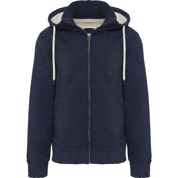 80% coton / 20% polyester. Entièrement doublé sherpa 100% polyester. 2 poches passepoilées devant. Fermeture à glissière métal. Bord-côte 4×4 au col, pourtour de capuche, bas de manches et bas de vêtement. Zip invisible côté cœur et couture côté gauche pour accès personnalisation. Ce produit a subi un traitement spécial et présente un aspect volontairement vieilli. Ce procédé de fabrication implique des variations de couleurs d’un produit à l’autre et rend chaque pièce unique. Pas d’étiquette de marque, uniquement une indication de taille pour faciliter la personnalisation.