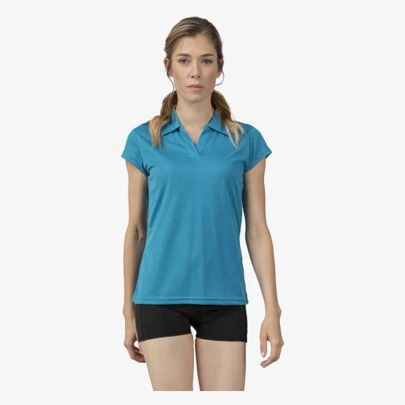 Polo respirant femme. Manches américaines. Col de la même matière que le polo. Etiquette imprimée pour plus de confort. Double surpiqûre aux manches et à l’ourlet.