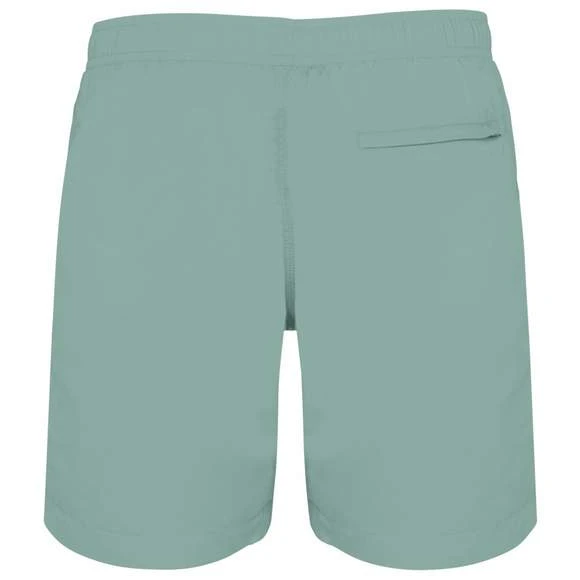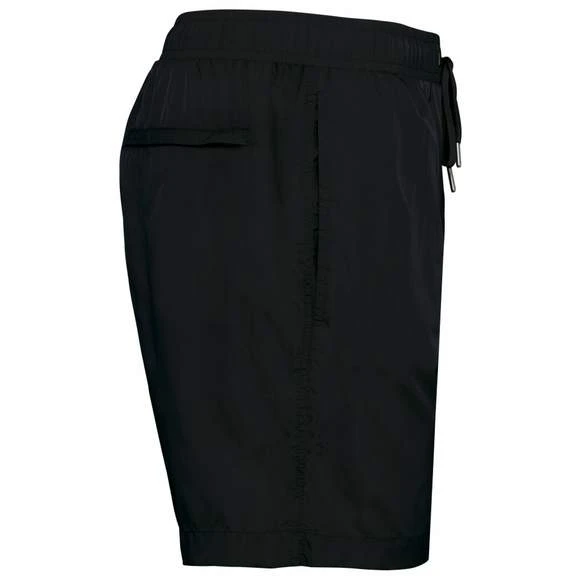 Short de bain pour homme. Coupe straight. 2 poches côtés avec sac de poche en filet. Point de renfort aux poches, à l’entrejambe, bas de jambe et au dos de la ceinture. Ceinture élastiquée avec cordon de serrage plat et embout métal. Slip intérieur en filet avec finition biais élastiqué pour plus de confort. Poche arrière passepoilée avec zip en nylon. Double aiguille à l’entrejambe et sur les côtés. Pas d’étiquette de marque à la ceinture, uniquement une puce de taille. Composition : 100% polyamide. Grammage : 60g/m²