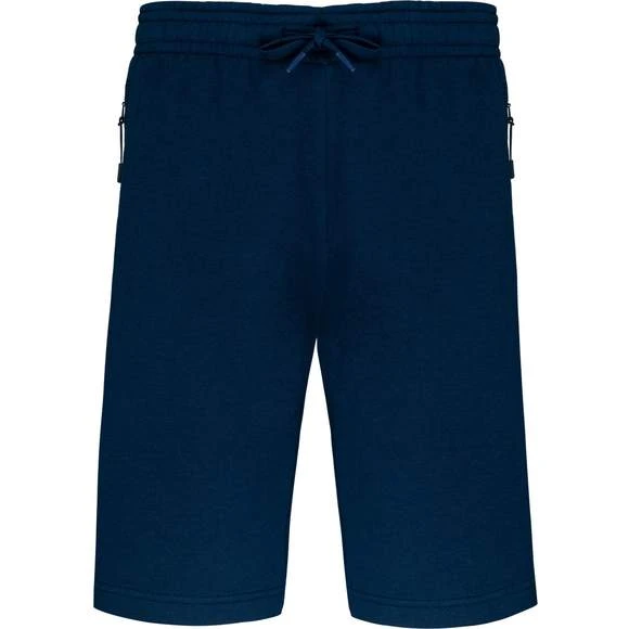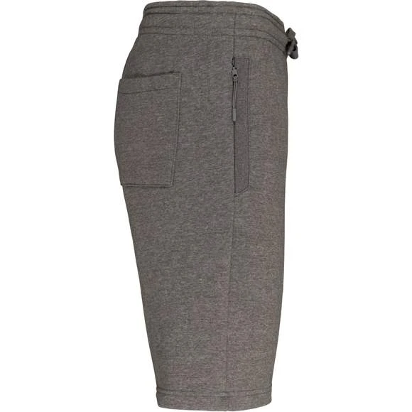 65% polyester / 35% coton. Molleton gratté. Ceinture élastiquée avec cordon de serrage ton sur ton. Pour plus de confort, finition intérieur taille par bande élastique au touché doux, contrastée avec liseré fluorescent. 2 poches côtés fantaisie avec fermeture à glissière, sac de poche en maille filet et une poche téléphone contrastée fluorescente. 1 poche plaquée arrière. Finition double aiguille au bas de jambe. Grammage : 280g/m²