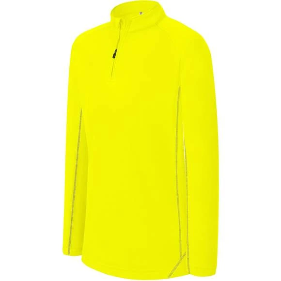Sweat running 1/4 zip enfant : 100% polyester polytricot. Manches raglan. Surpiqûres contrastées. Grammage : 170g/m²