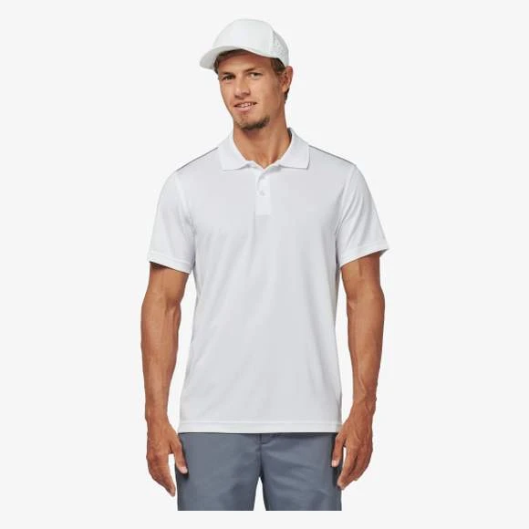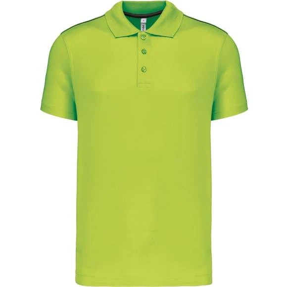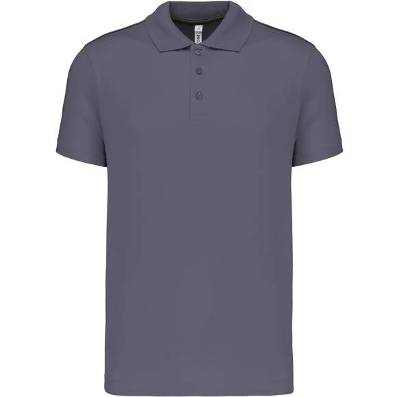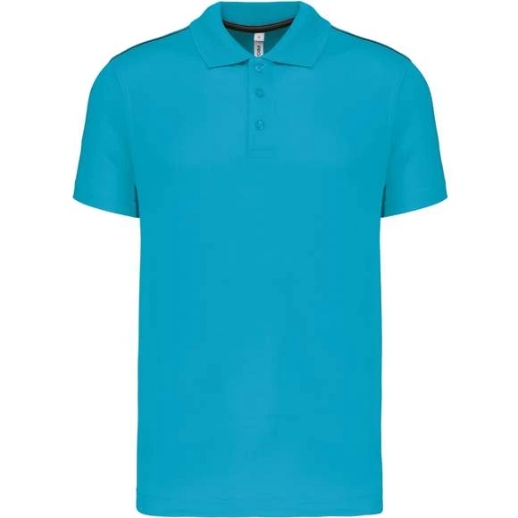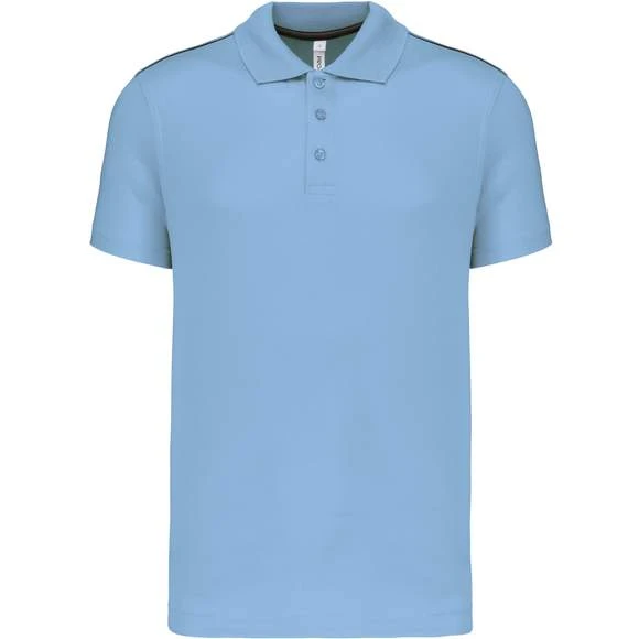 Polo manches courtes : 100% polyester interlock. Tissu à séchage rapide. Col en bord-côte. Patte de boutonnage 3 boutons. Bande de propreté contrastée encolure et fentes côtés. Passepoil contrasté épaules. Finition double aiguille bas de manches Grammage : 155g/m²