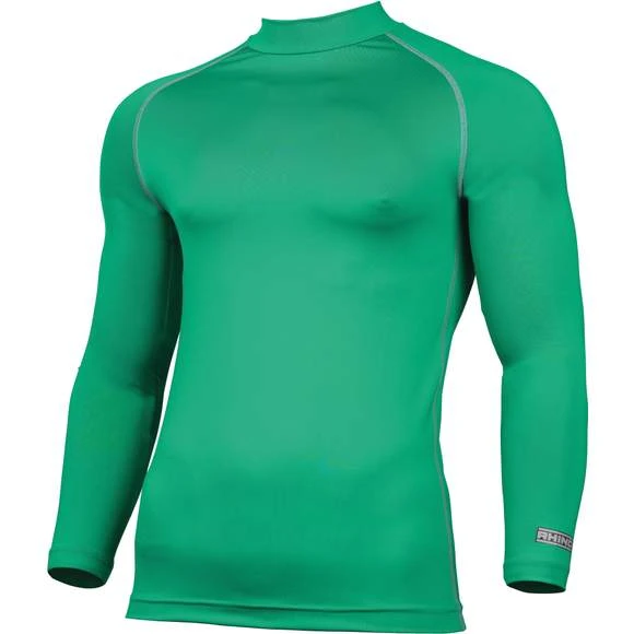 Maillot à manches longues à col roulé. Le col roulé peut être personnalisé en y ajoutant un logo ou un texte. Logo Rhino au dos du col roulé. Vous tient au chaud et au sec par temps froid. Tissu léger, doux, facile d’entretien et de séchage rapide. Sensation comme une deuxième peau. Régule la température du corps. Coupe à manches raglan, pour faciliter les mouvements. Convient à tous les sports (y compris football, rugby, hockey, golf, cricket, sports d’hiver, cyclisme et sports hippiques), et pour travailler. Composition : 90% Polyester 10% Spandex Grammage : 260g/m²