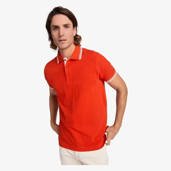 Polo manches courtes avec col et bord de manche en côte 1×1. Plaquette 3 boutons sur ton avec intérieur assorti aux liserés col et manches. Bande de propreté à l´encolure, bas avec fentes latérales. 100% coton peigné, maille piquée, 230 grs/m² Grammage : 230g/m²