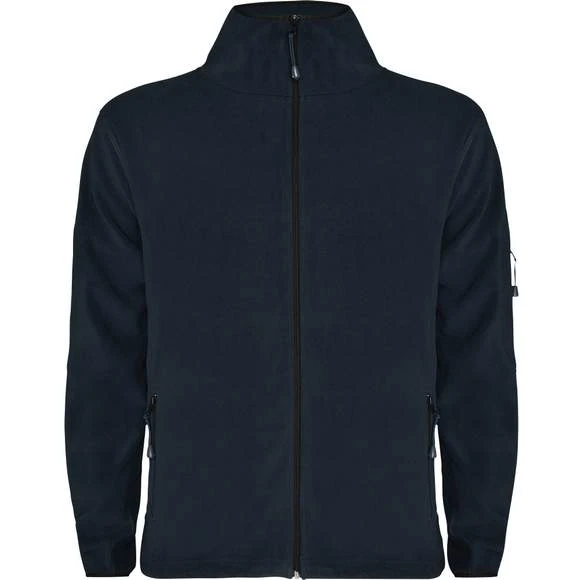 Veste polaire pour le sport, col montant et manches longues avec liseré contrasté. Zip central. Poches avec zip sur la manche gauche et zip central, tous deux contrastés. Coutures latérales et poitrine. Coudières ton sur ton. Étiquette détachable. Traitement anti-bouloches. Duo Concept. Composition : 100% polyester micropolaire. Grammage : 300g/m²