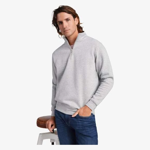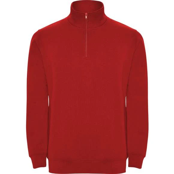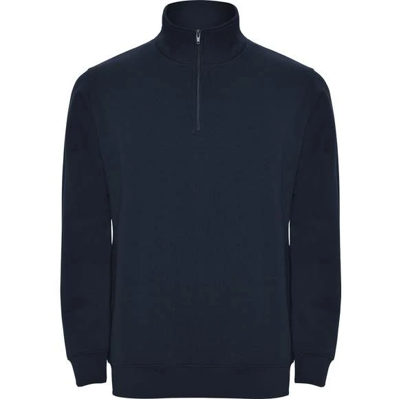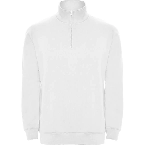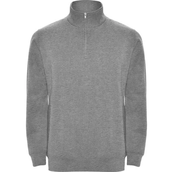 Sweat avec demi zip ton sur ton et col montant. Intérieur du cou même tonalité. Bande de propreté renforcée à l’intérieur du col. Poignets et ceinture en côte 1×1. Maille molleton. Traitement anti-bouloches. Composition : 50% coton / 50% polyester. Gris chiné : 55 % coton / 40 % polyester / 5 % viscose. Grammage : 280g/m²