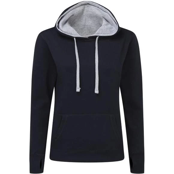 Avec sa qualité, son confort et son style, ce sweat à capuche à la coupe féminine est idéal. La doublure gaufrée de la capuche de couleur contrastée, la bande de propreté et le cordon de serrage ajoutent un style urbain à cet incontournable des garde-robes. À la mode et polyvalent. Capuche doublée, intérieur gaufré contrasté. Bande de propreté contrastée (assortie à l`intérieur de la capuche). boucles écouteurs contrastées (assorties à l`intérieur de la capuche). Surpiqûre 5 points pour un look contemporain. Cordon plat de même couleur que l`intérieur de la capuche. Poche MP3 à l`intérieur de la poche kangourou. Orifice pour le pouce en bout de manche. Composition : 80% coton peigné ringspun, 20% polyester (sauf coloris Light Oxford: 70% coton, 30% polyester). Grammage : 280g/m²