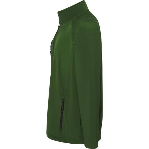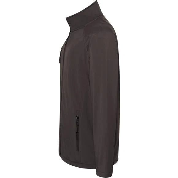Veste Softshell homme. 3 couches. 2 poches latérales zippées. Poche poitrine zippée. Doublure polaire avec stoppers. Composition : Extérieur: 95% polyester/5% élasthanne