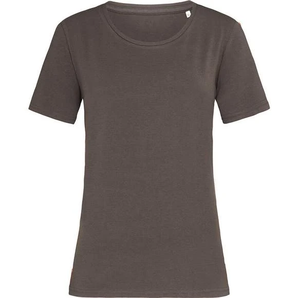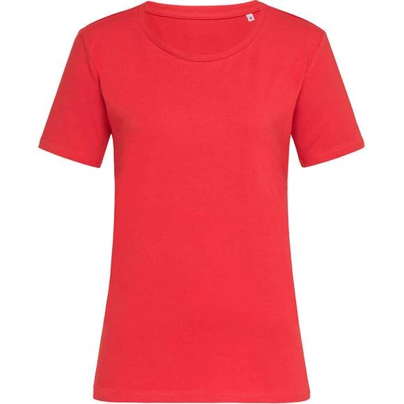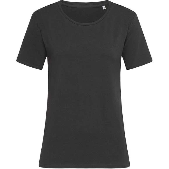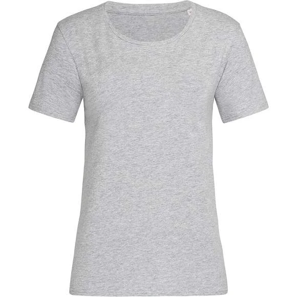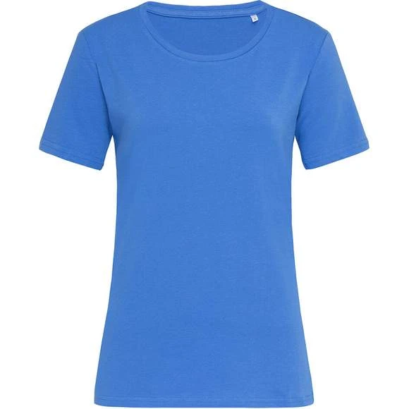 T-shirt coupe confort pour femmes en mélange doux de coton et d’élasthanne. coton peigné élastique avec élasthanne, pas d’étiquette de marque dans le cou. jersey simple « full feeder », couture épaules renforcée, col fin dans la même matière, bande de propreté, coutures latérales, petite étiquette de taille dans le cou, étiquette d’entretien dans la couture latérale. Composition : 95% coton peigné ring-spun, 5% élasthanne; jersey simple «full feeder» (GYH: 82% coton, 14% viscose, 4% élasthanne). Grammage : 170g/m²